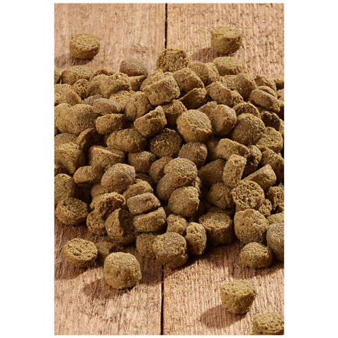 Carne și subproduse de origine animală (făină de pasăre, făină de vită), pește și subproduse din pește (făină de somon, făină de pește de mare), cereale (făină de porumb, orz), subproduse vegetale (celuloză, felii de sfeclă de zahăr uscată), legume extracte proteice (proteine din cartofi) * semințe de in, ouă și produse din ouă (pudră de ou întreg), minerale, drojdie *, alge *, ierburi *, rădăcină de cicoare * (sursă de inulină)